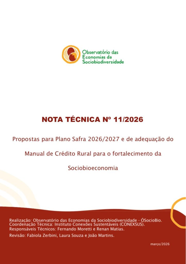 NOTA TÉCNICA Nº 11/2026 – Propostas para Plano Safra 2026/2027 e de adequação do Manual de Crédito Rural para o fortalecimento da Sociobioeconomia
