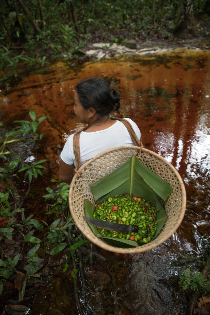 Indígena do povo Baniwa após colheita da pimenta na região da comunidade de Canadá, Rio Ayari – Carol Quintanilha/ISA